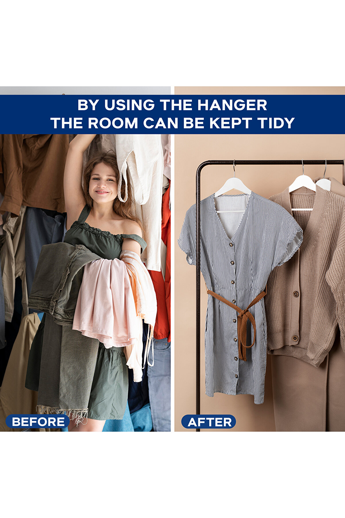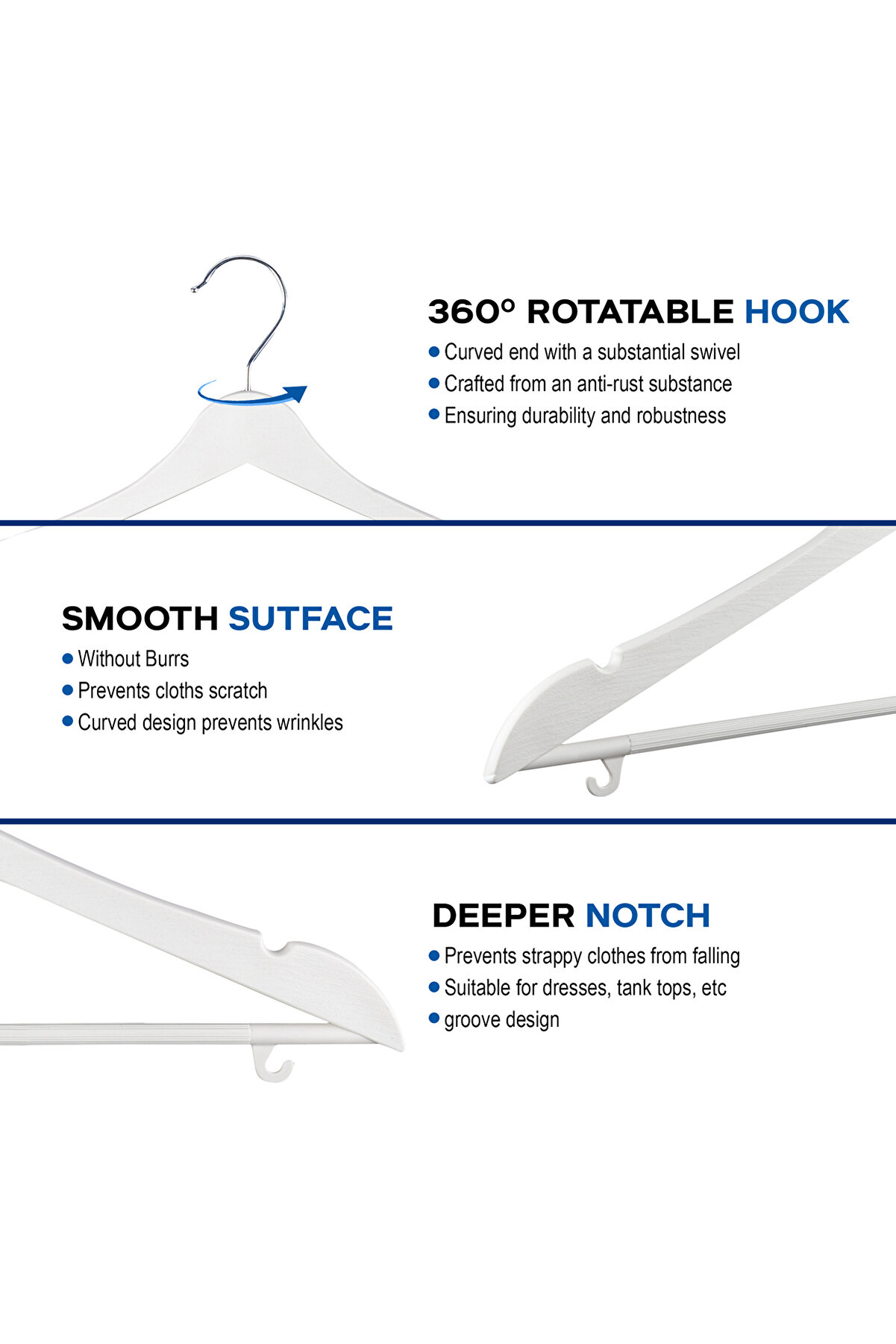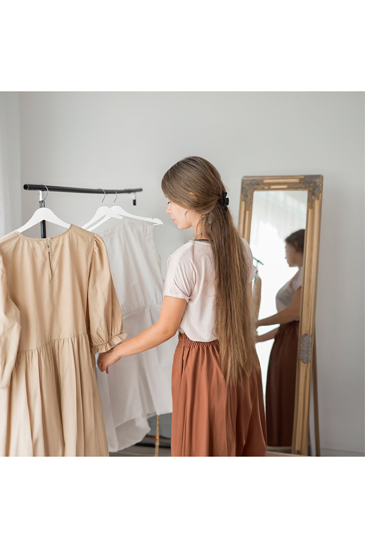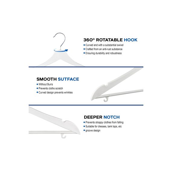 Ahşap Görünümlü Plastik Döner Kancalı Elbise Askısı Beyaz Renk 10lu