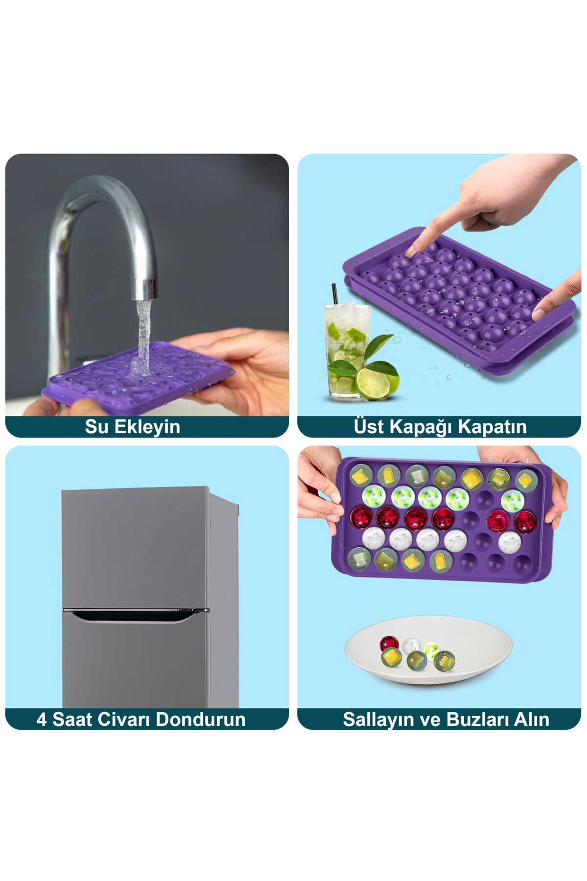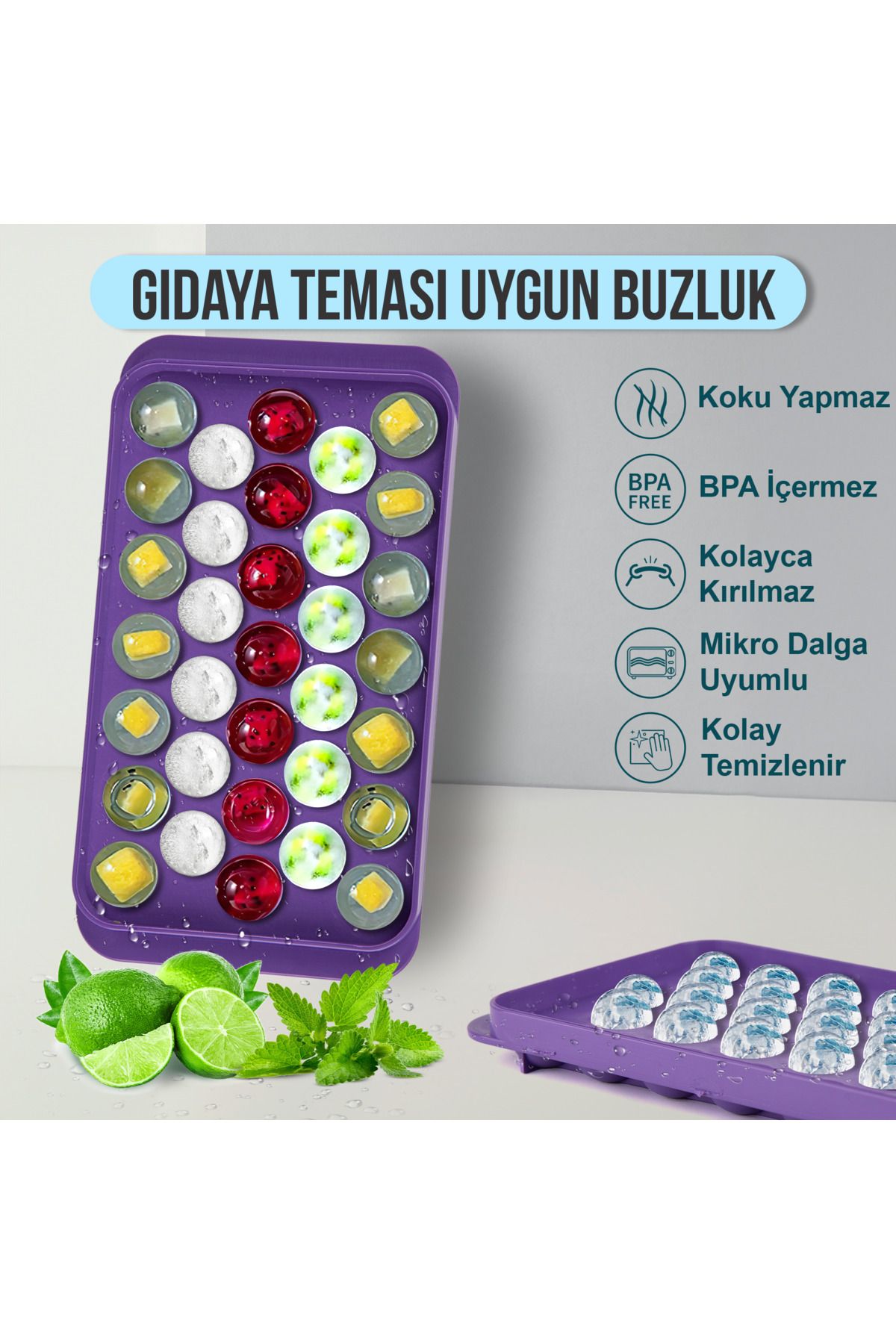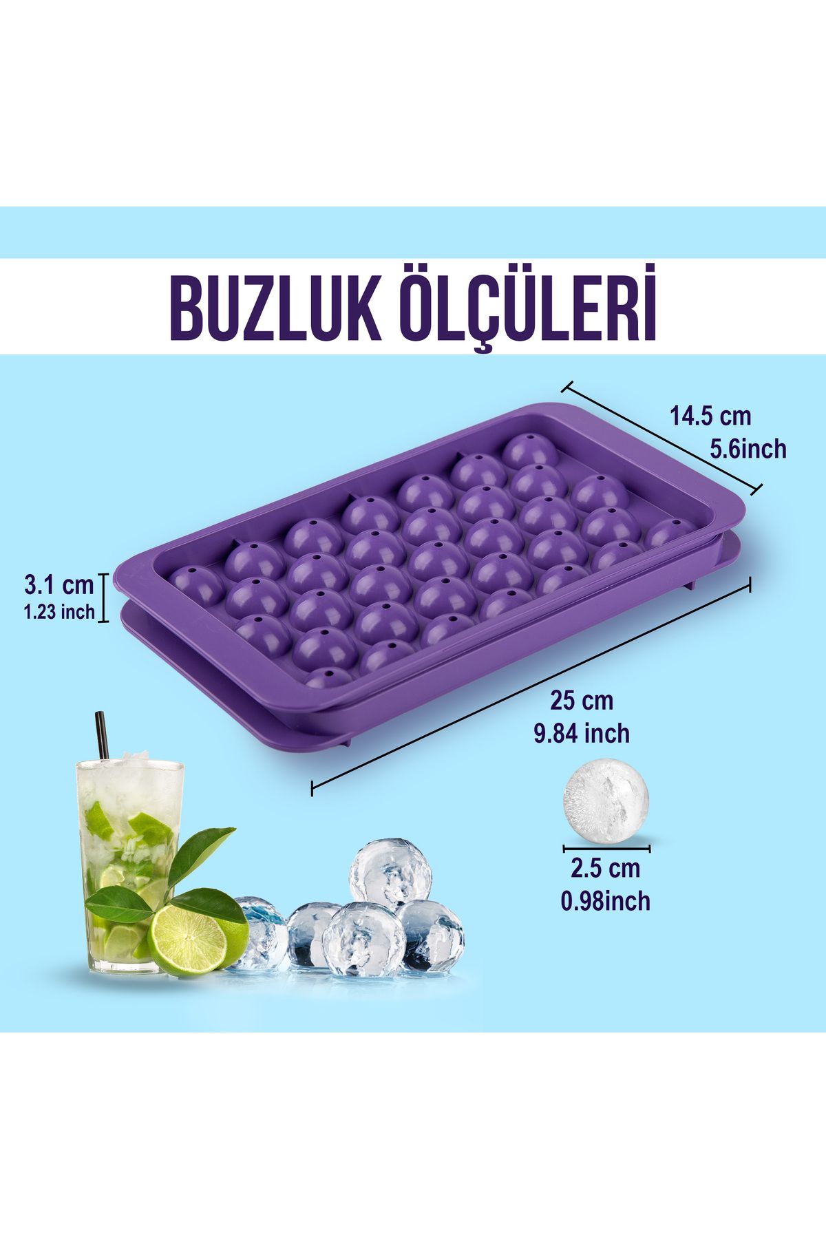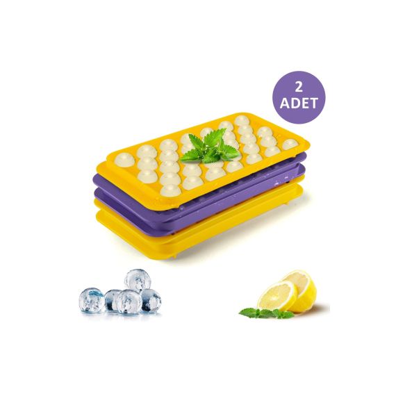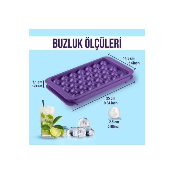 Küre Buz Kalıbı Kapaklı 33 Hazneli Yuvarlak Buz Kalıbı Kokteyl Sunum Buz Kalıbı 2li buz_kalibi_33lu, one size
