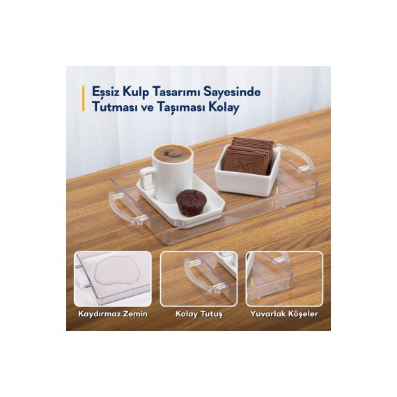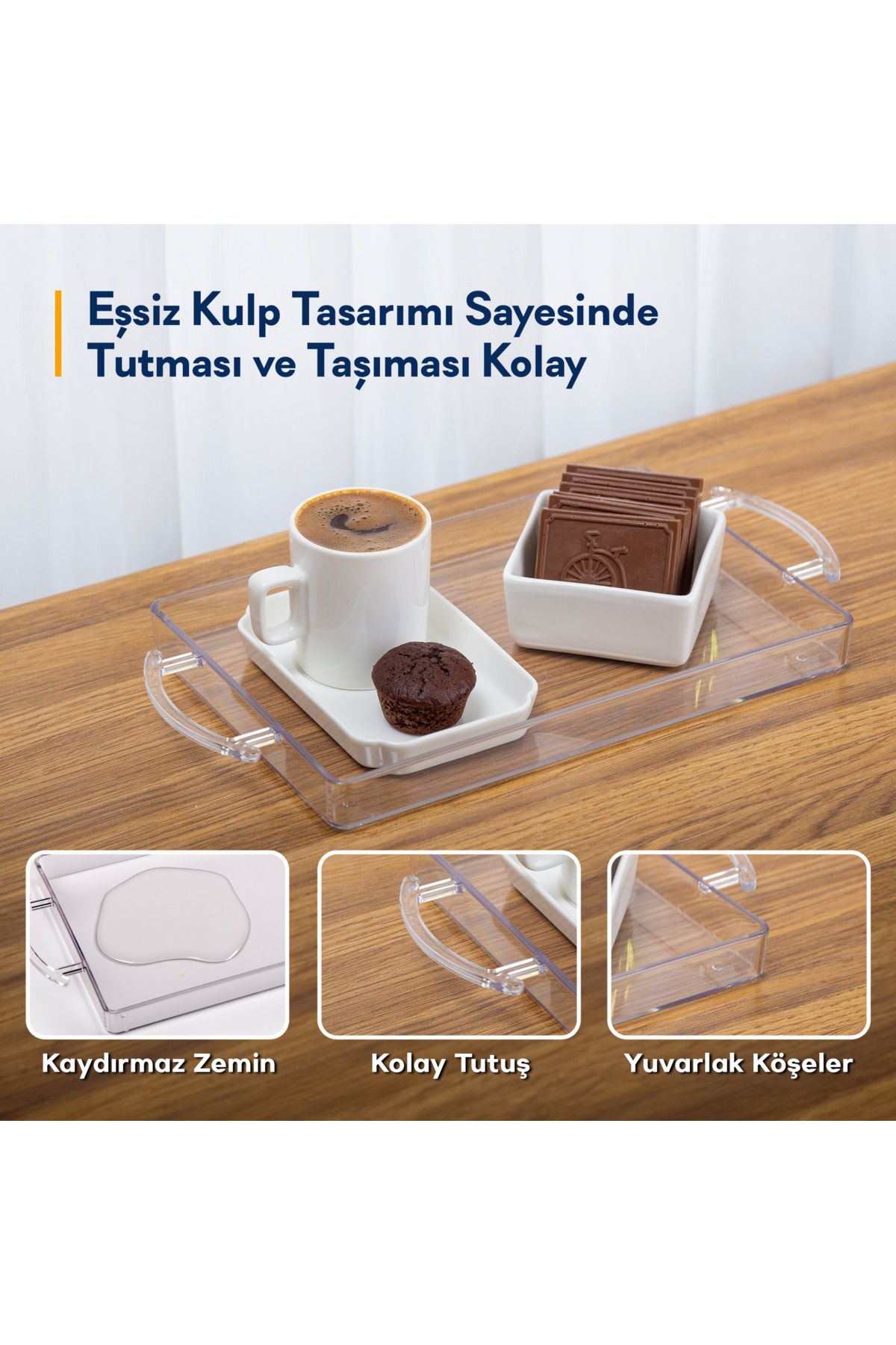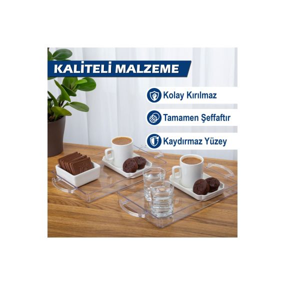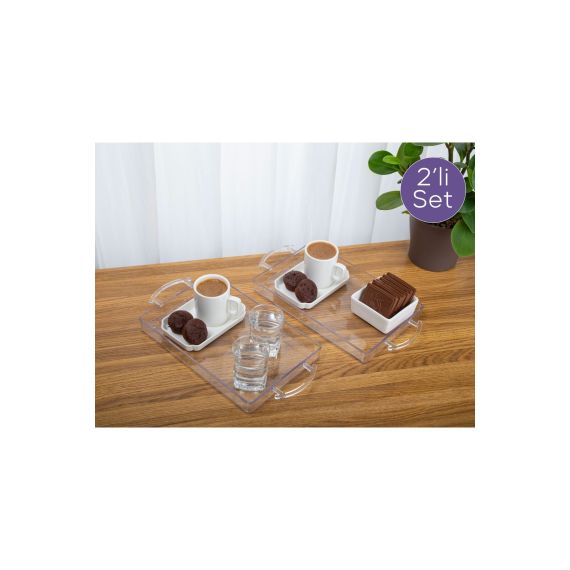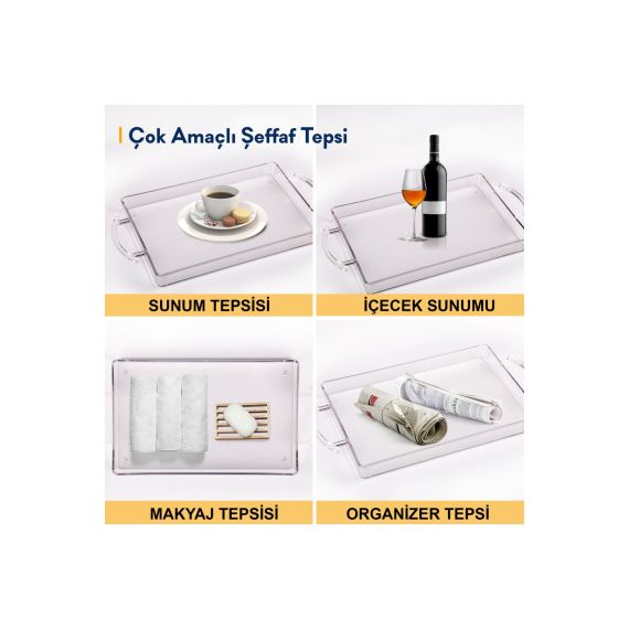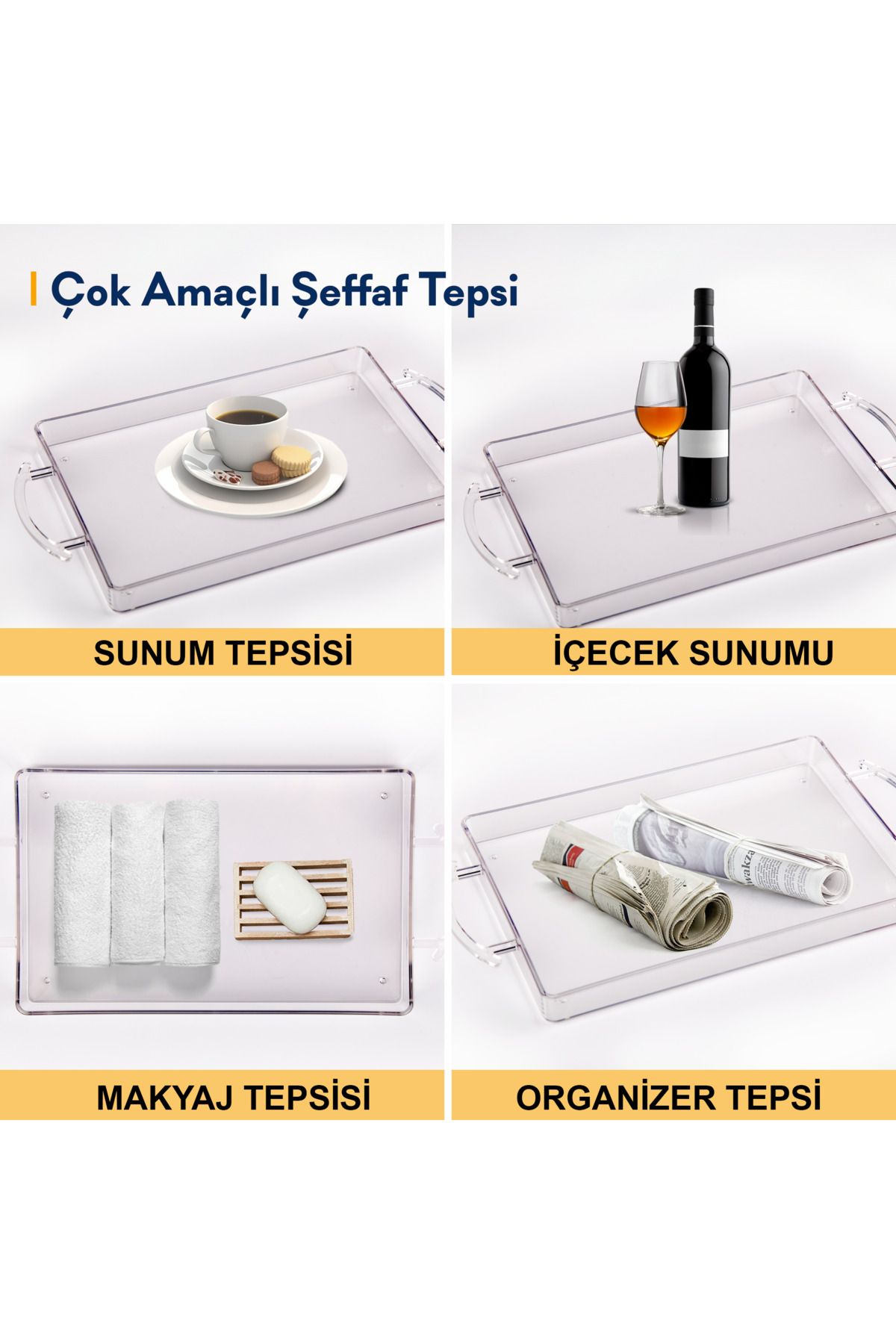 MİLANO HOME Pleksiglas 2 adet Seffaf Dekoratif Sunum Tepsisi Şeffaf Tepsi Gold Kahve Sunum Tepsisi