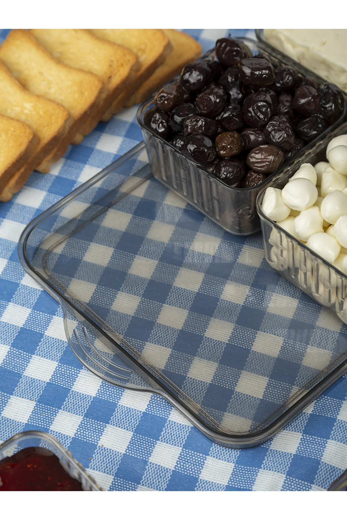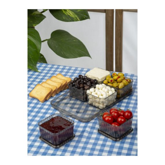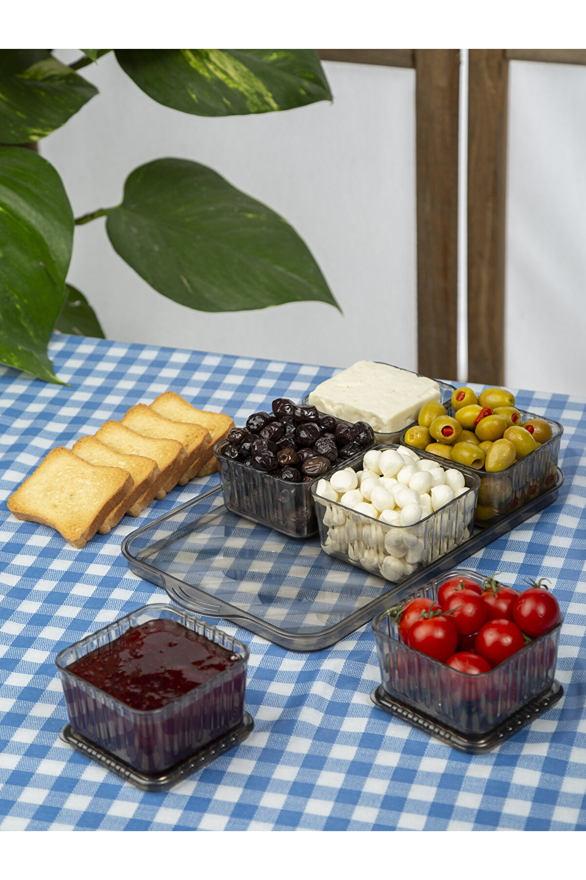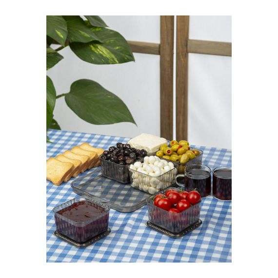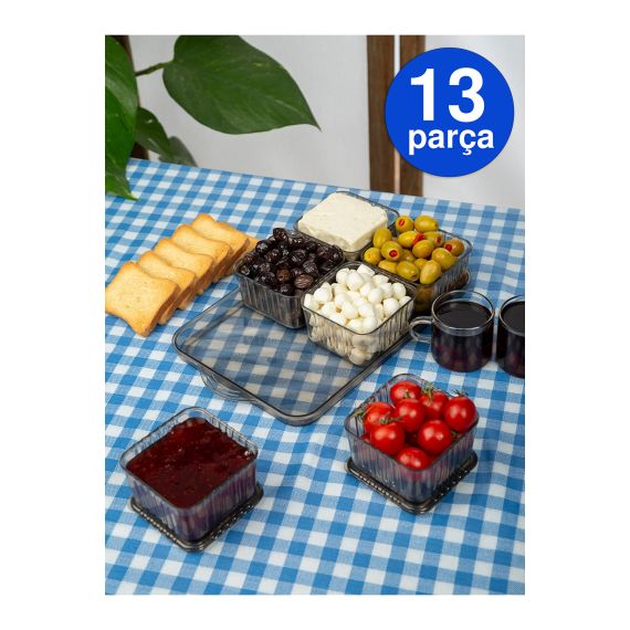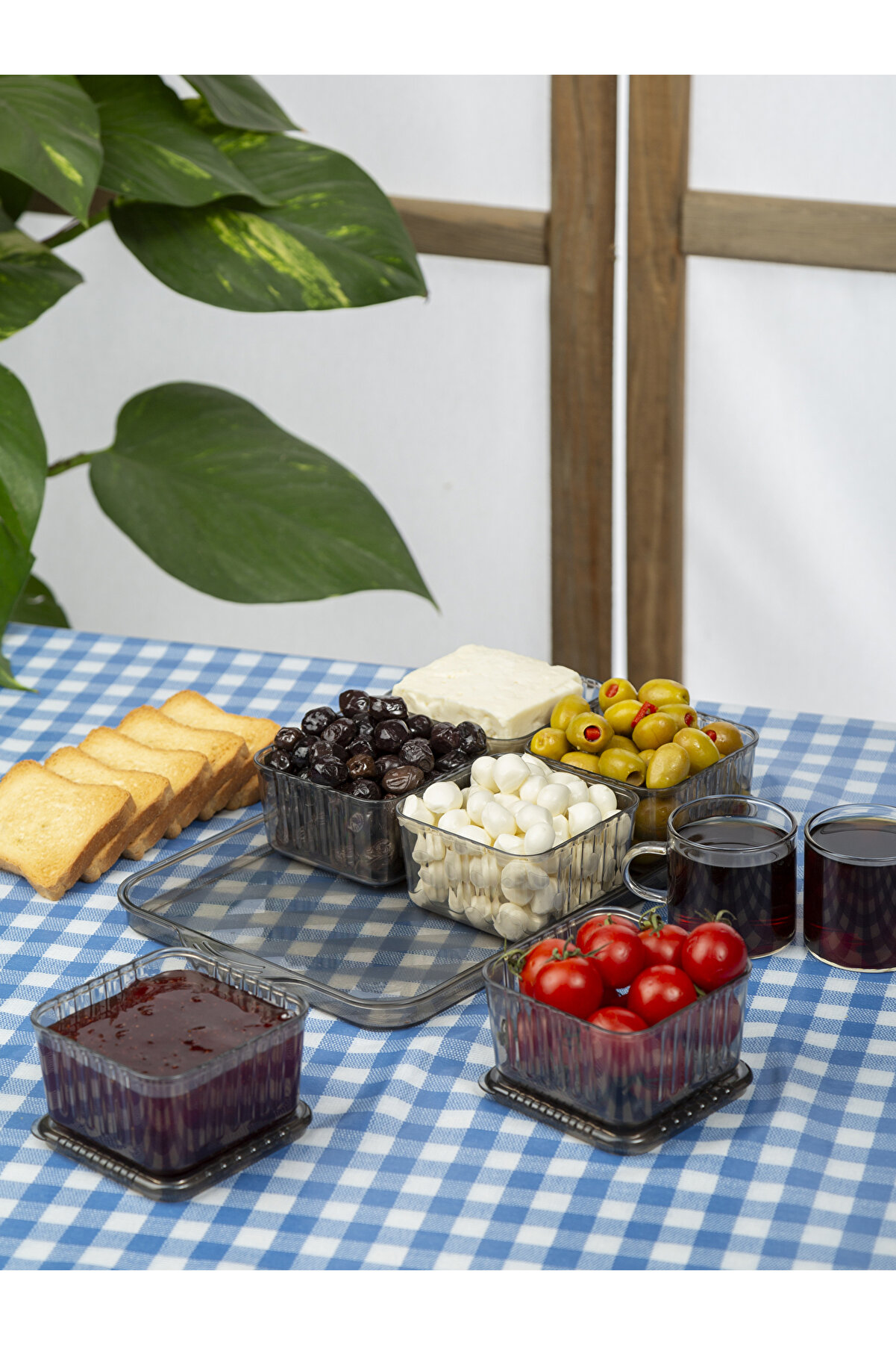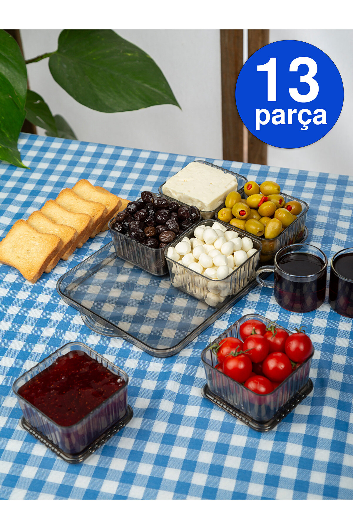 MİLANO HOME Antrasit Tepsili Lüx 13 Parça 6 Bölmeli Kahvaltılık Seti Kapaklı Tepsili Kahvaltı Sunum Takımı