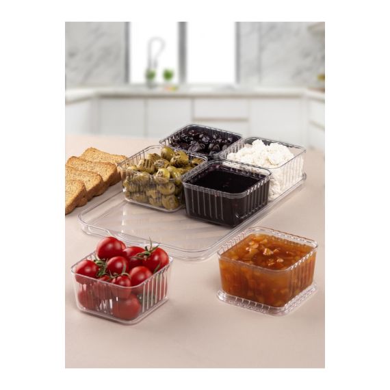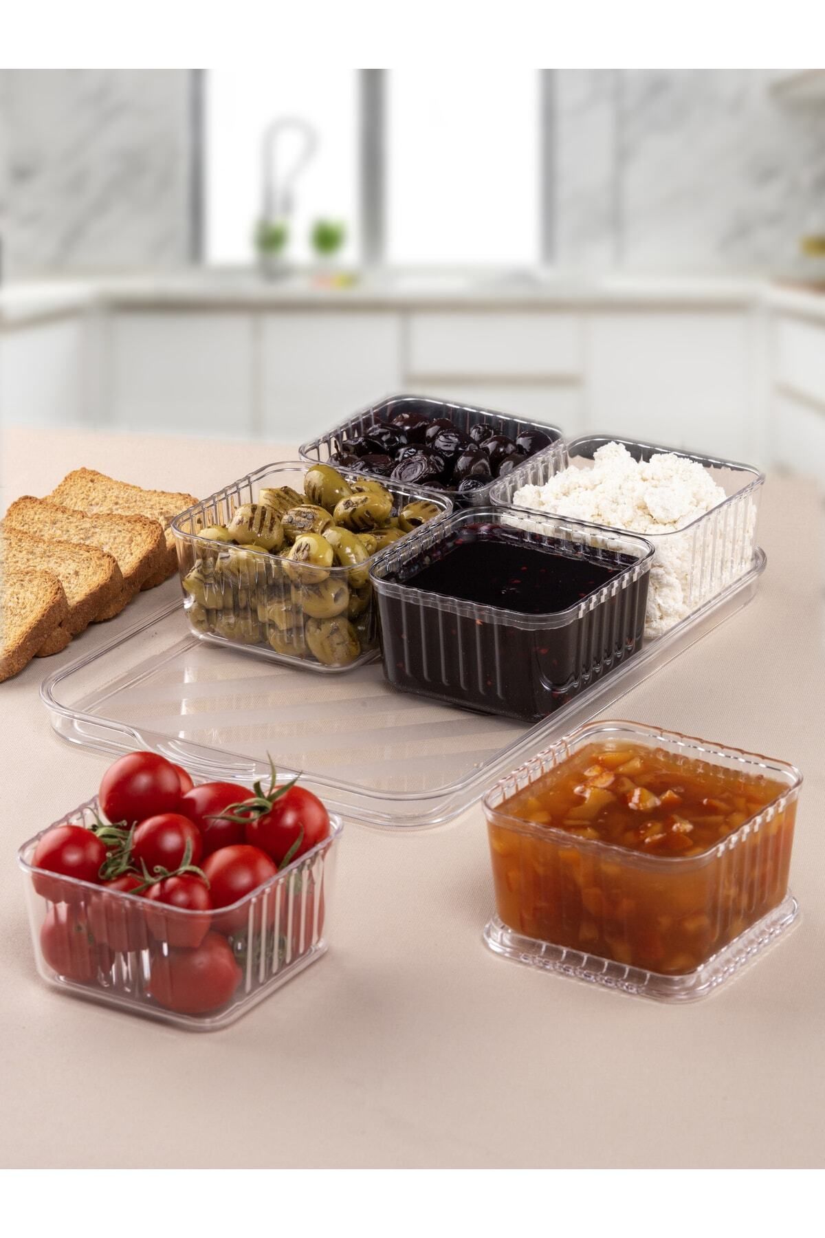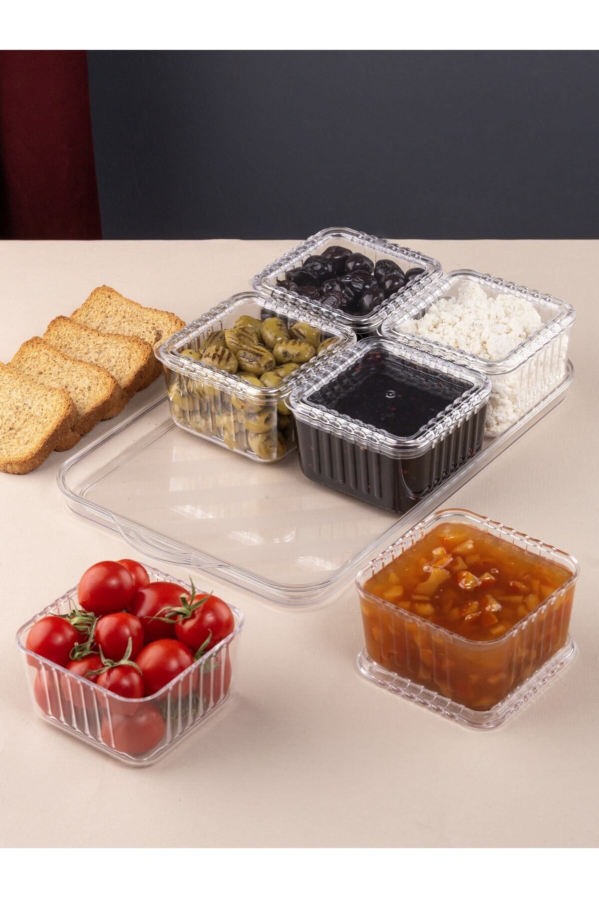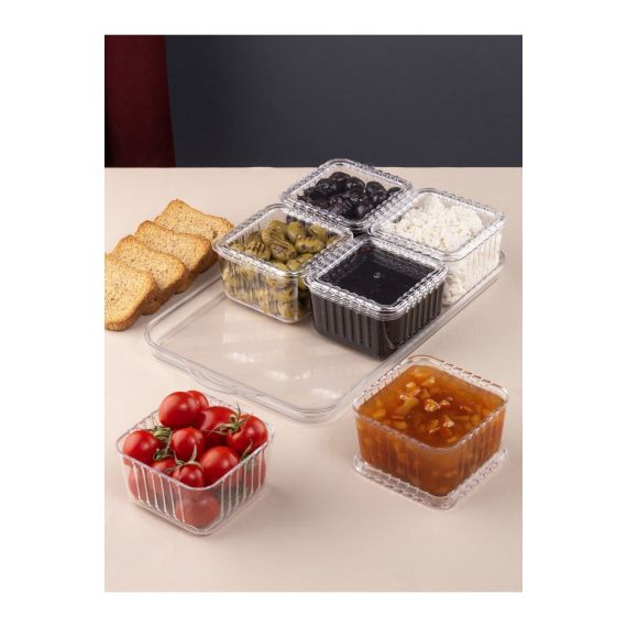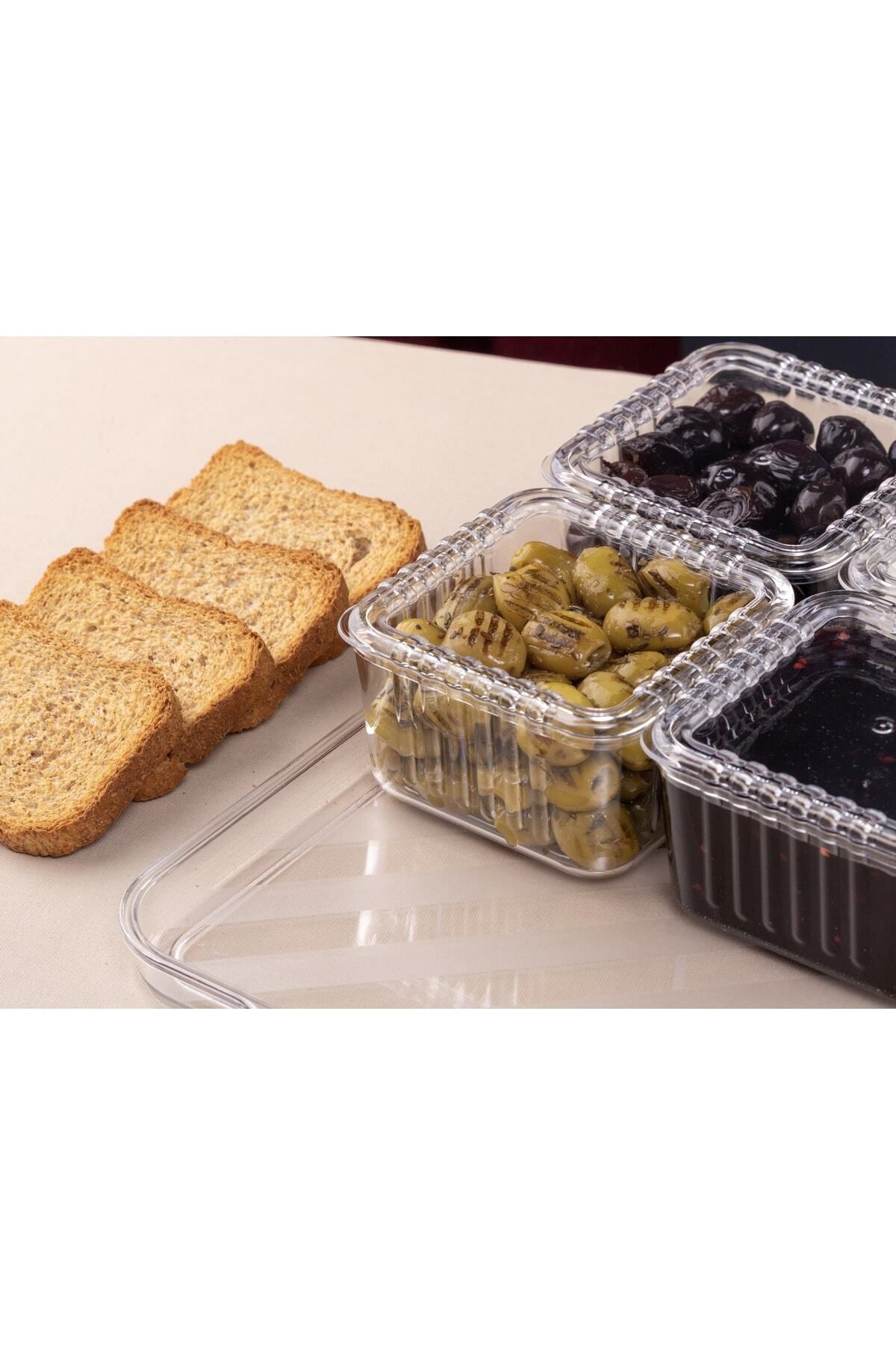 MİLANO HOME Tepsili Lüx 6 Bölmeli 13 Parça Kahvaltılık Seti Kapaklı Tepsili Akrilik Kahvaltı Sunum Takımı